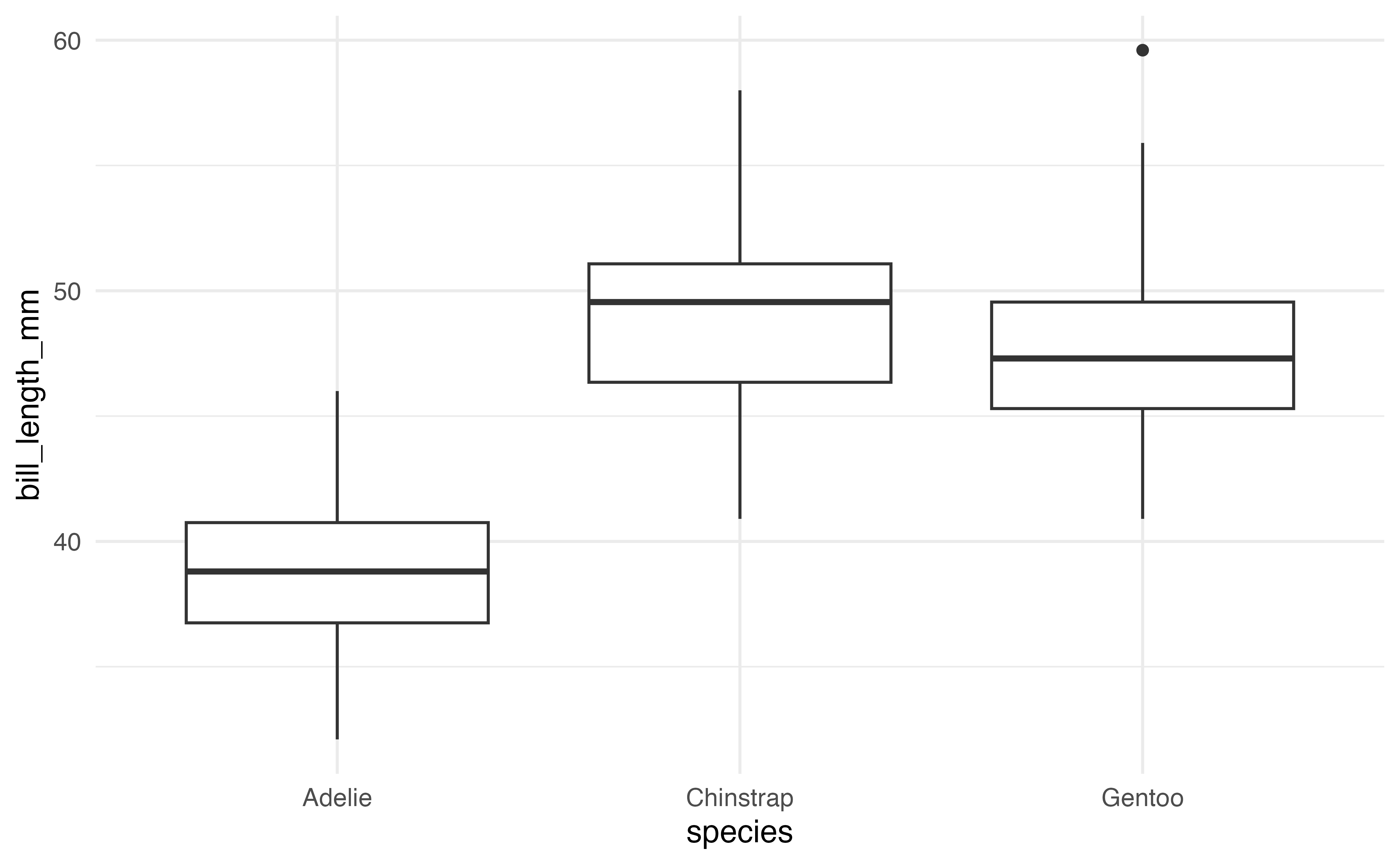 ggplot(data = penguins, aes(x = species, y = bill_length_mm)) +