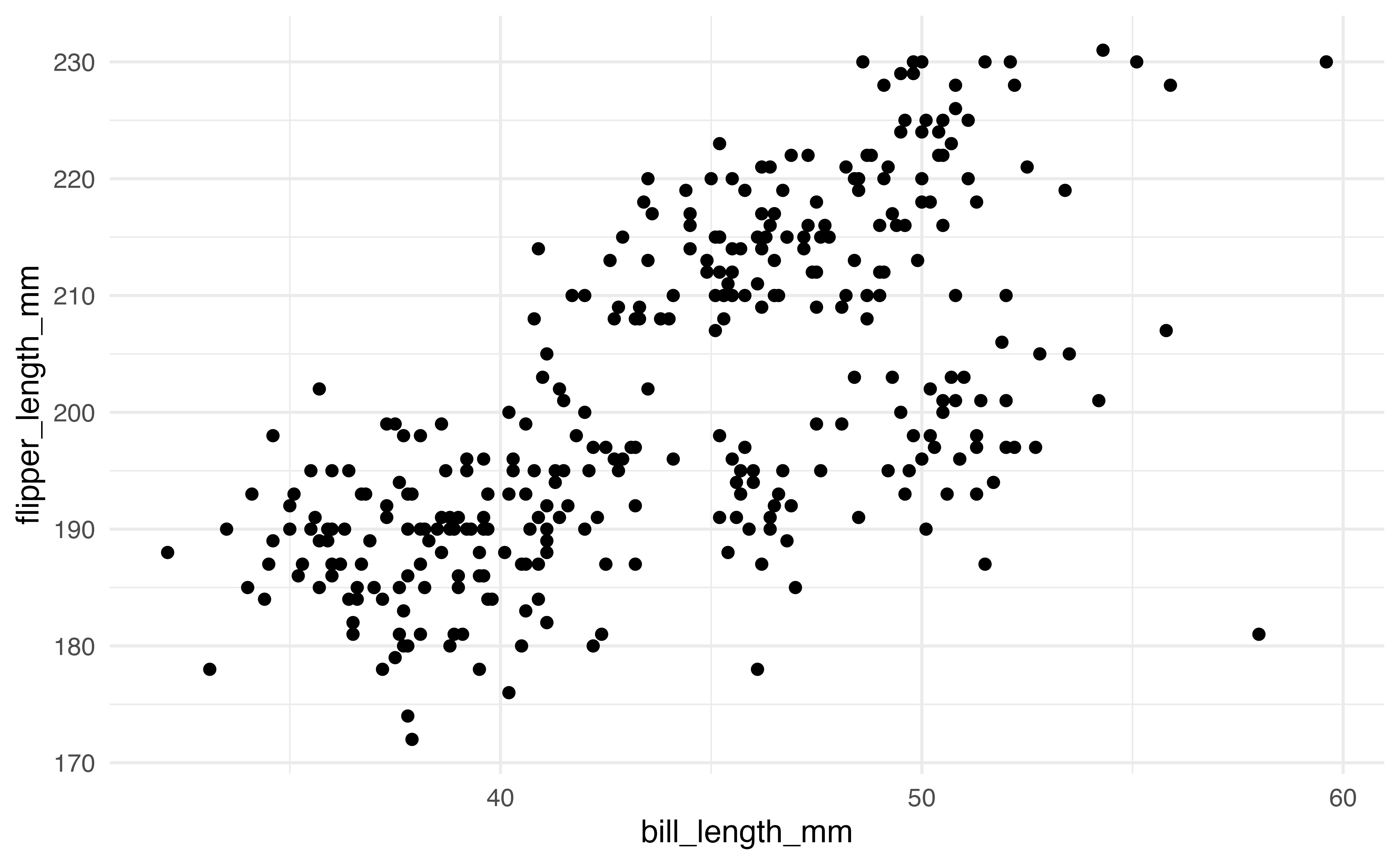 ggplot(data = penguins, aes(x = bill_length_mm, y = flipper_length_mm)) +