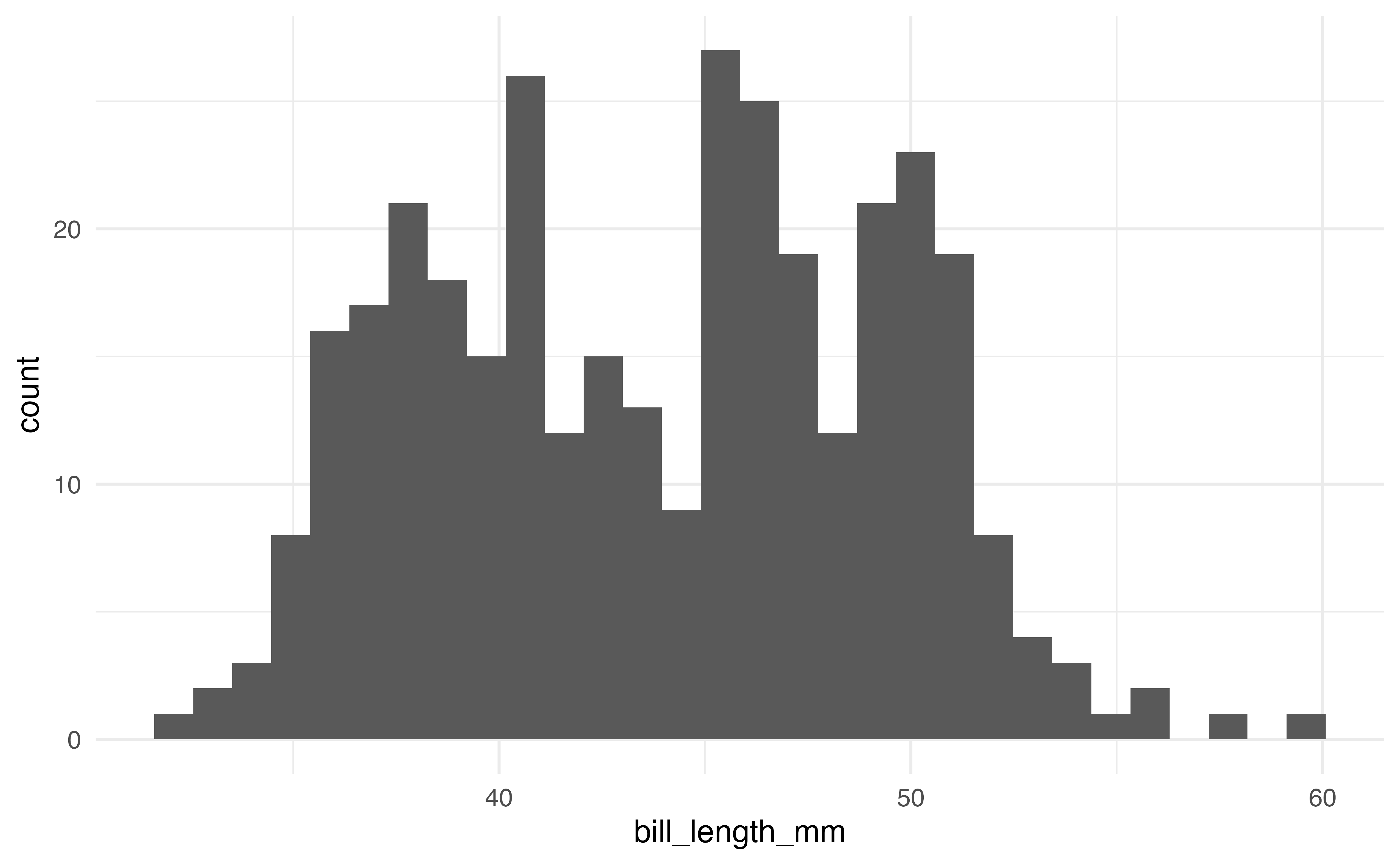 ggplot(data = penguins, aes(x = bill_length_mm)) +