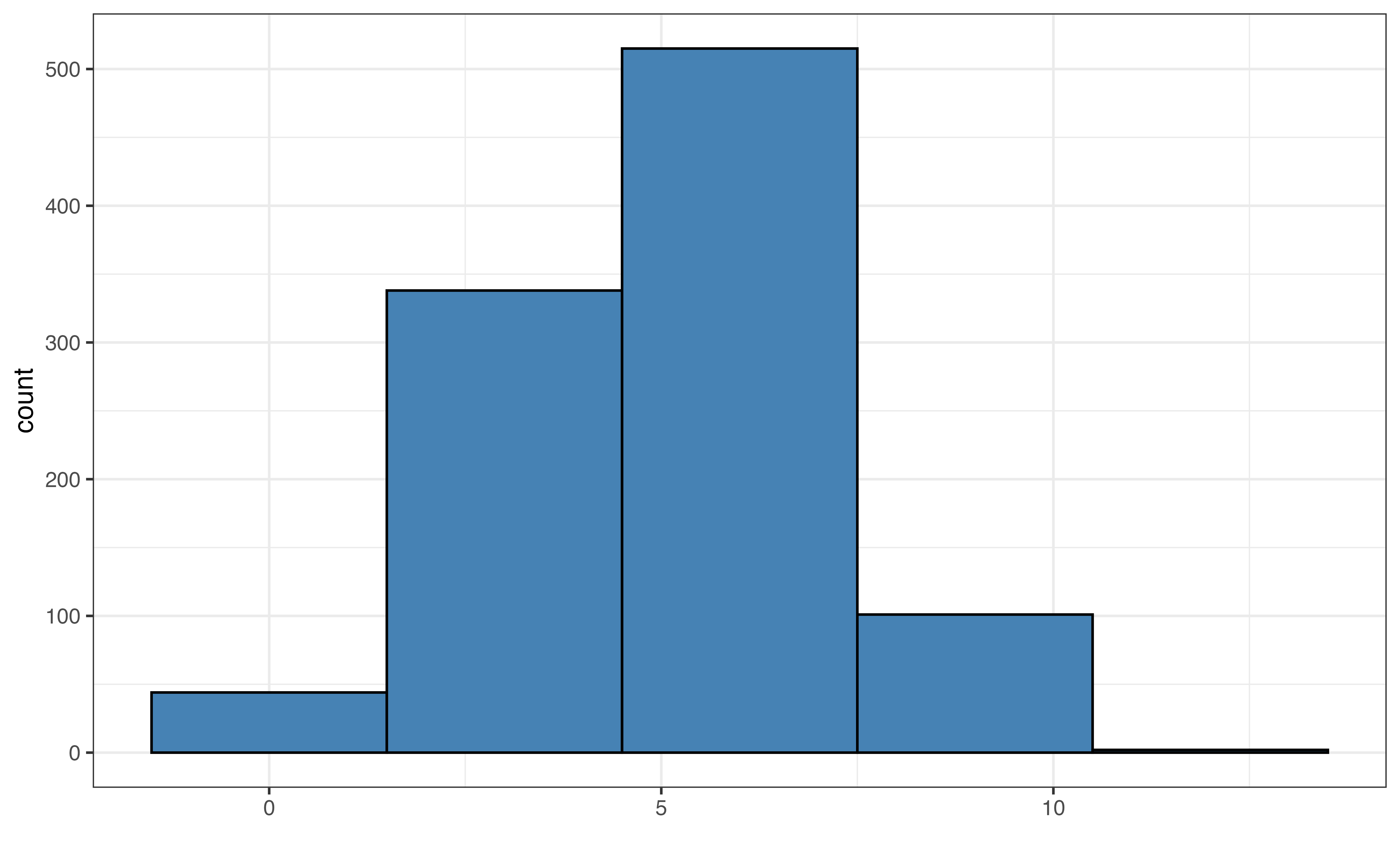 In addition to visualizations, we can make a frequency table, a table of the number and proportion of observations at each level.