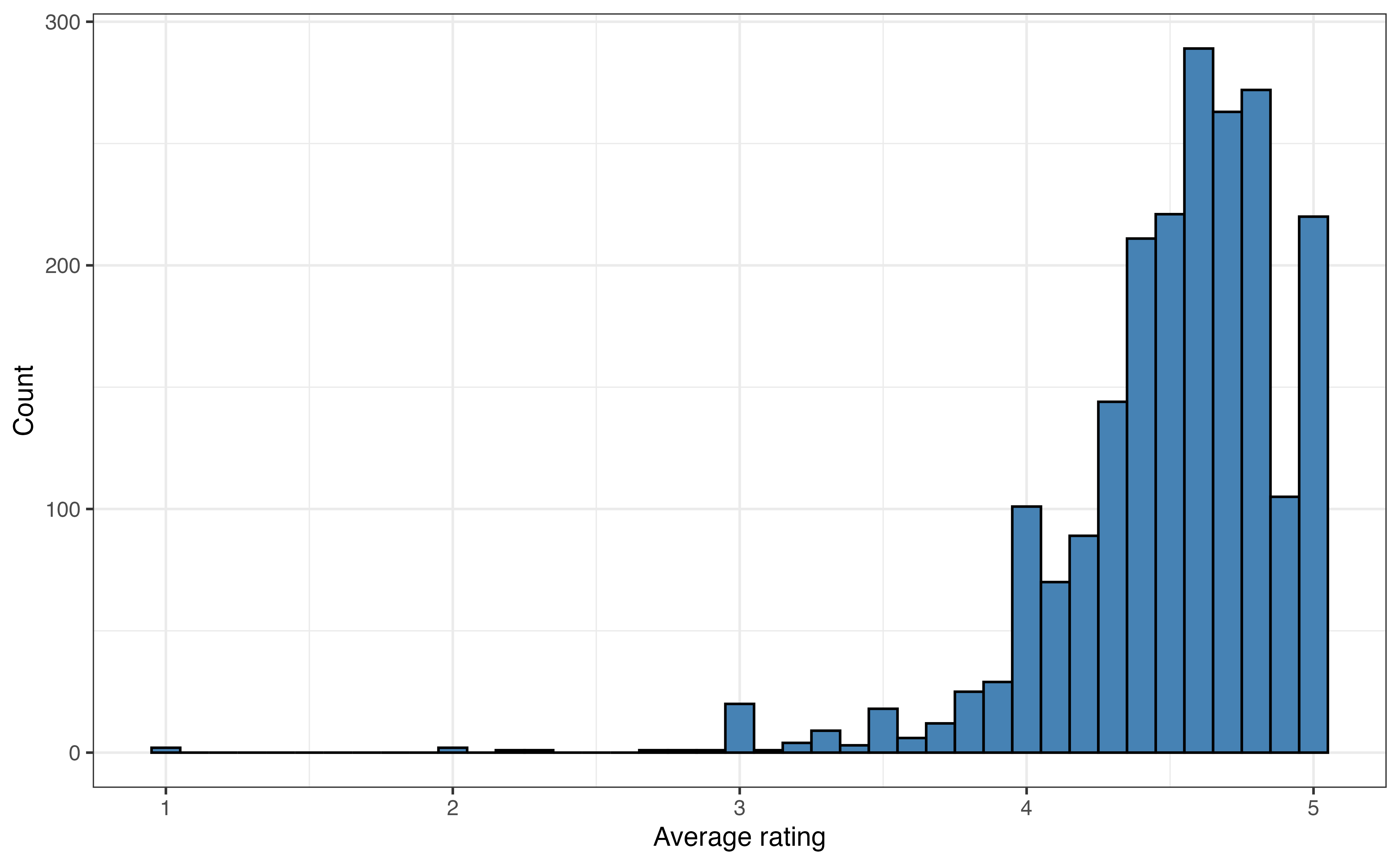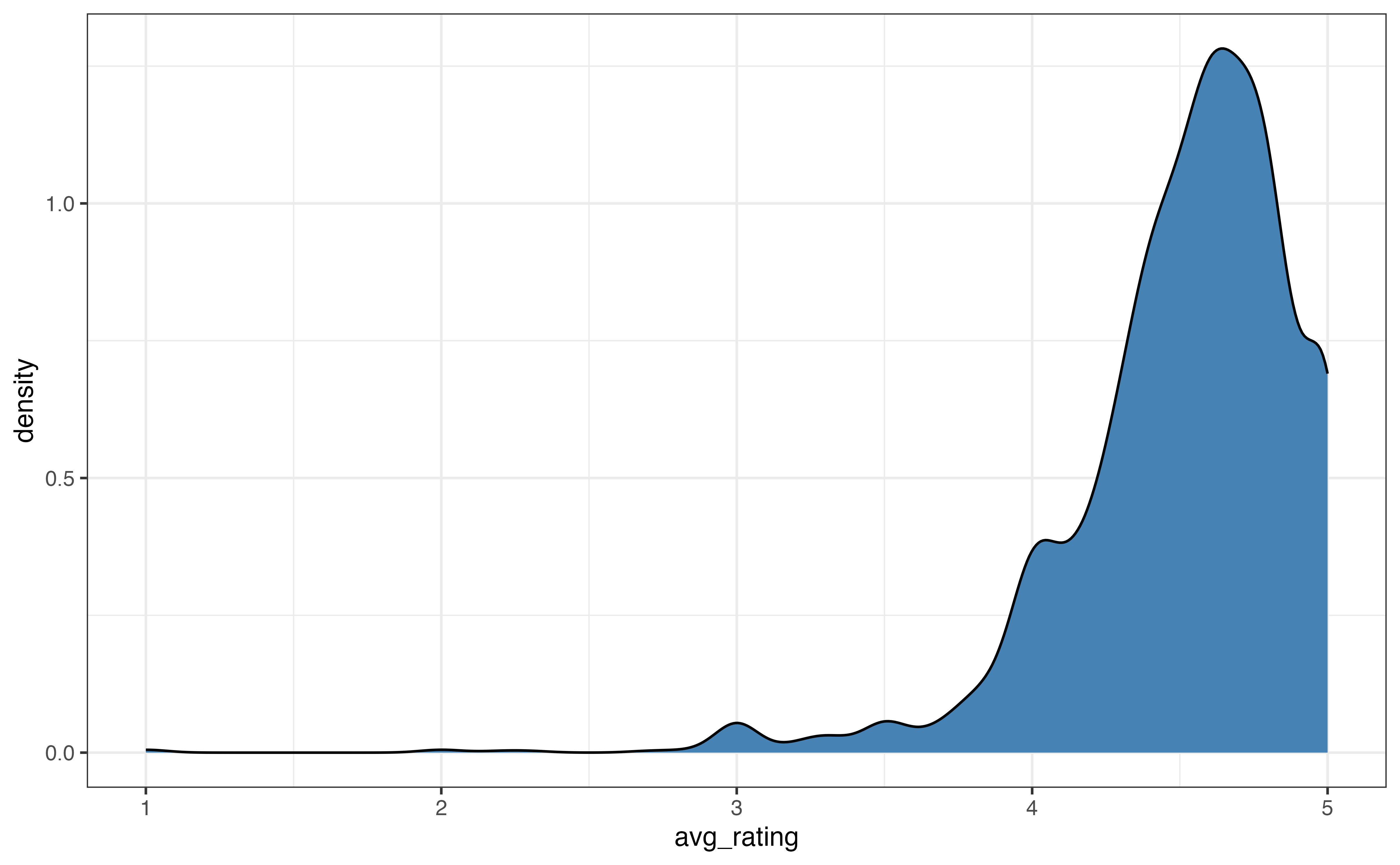 avg_ratingis skewed left and unimodal.↩︎The distribution of