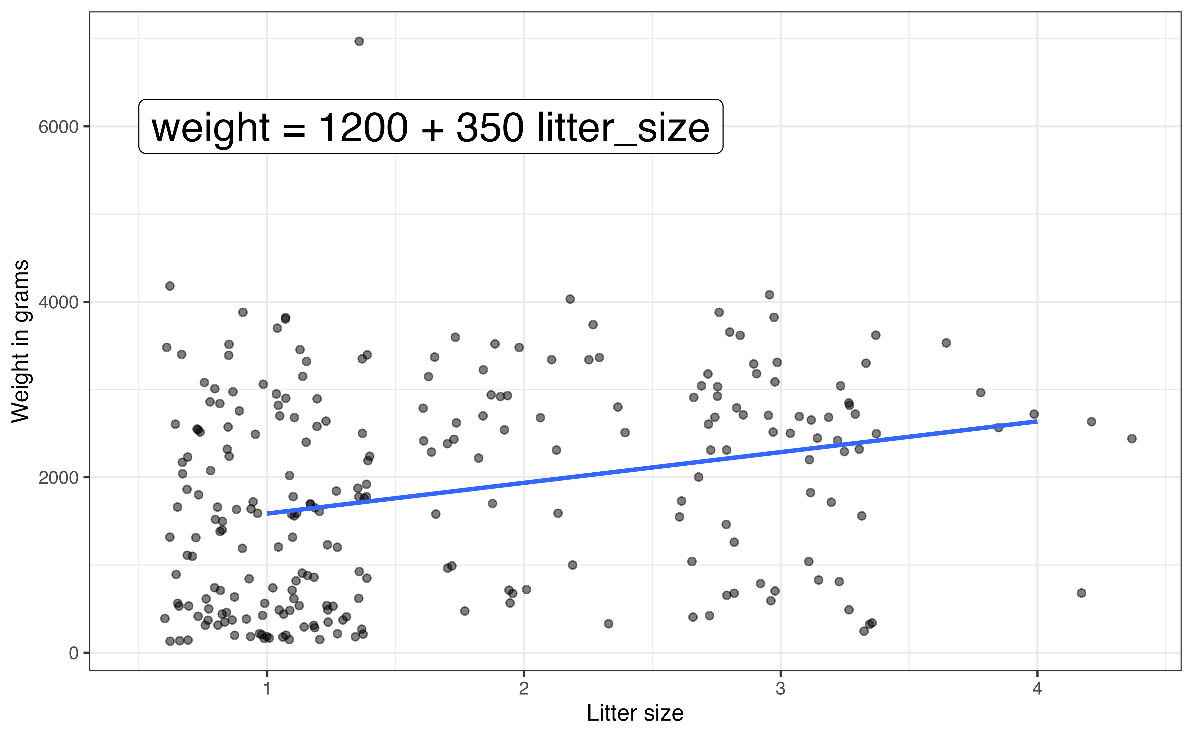 kable(digits = 3)| weight | age | sex | taxon | litter_size | .fitted |