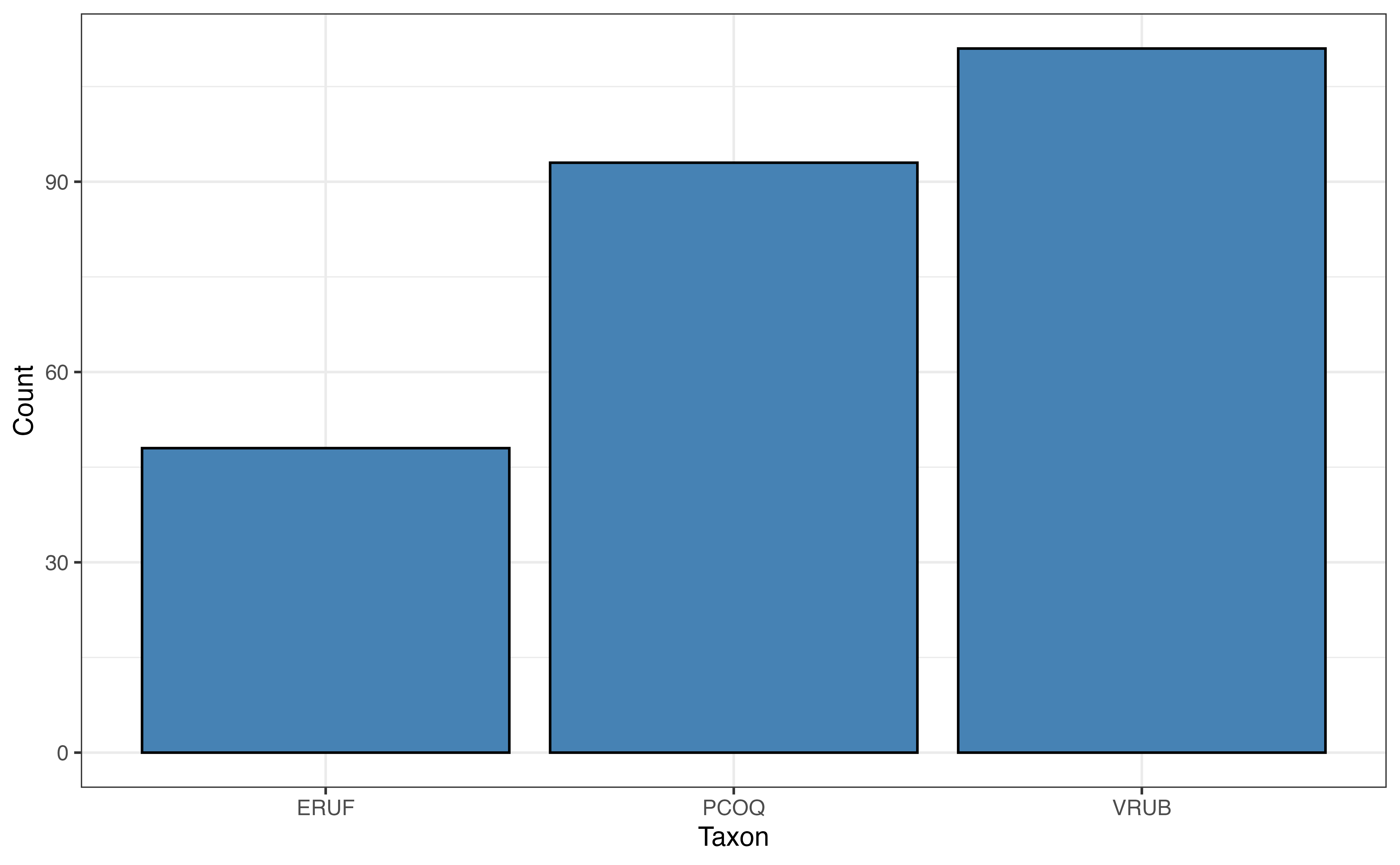taxon: Code made as a combination of the lemur’s genus and species. Note that the genus is a broader categorization that includes lemurs from multiple species. This analysis focuses on the following taxon:ERUF: Eulemur rufus, commonly known as Red-fronted brown lemurPCOQ: Propithecus coquereli, commonly known as Coquerel’s sifakaVRUB: Varecia rubra, commonly known as Red ruffed lemur