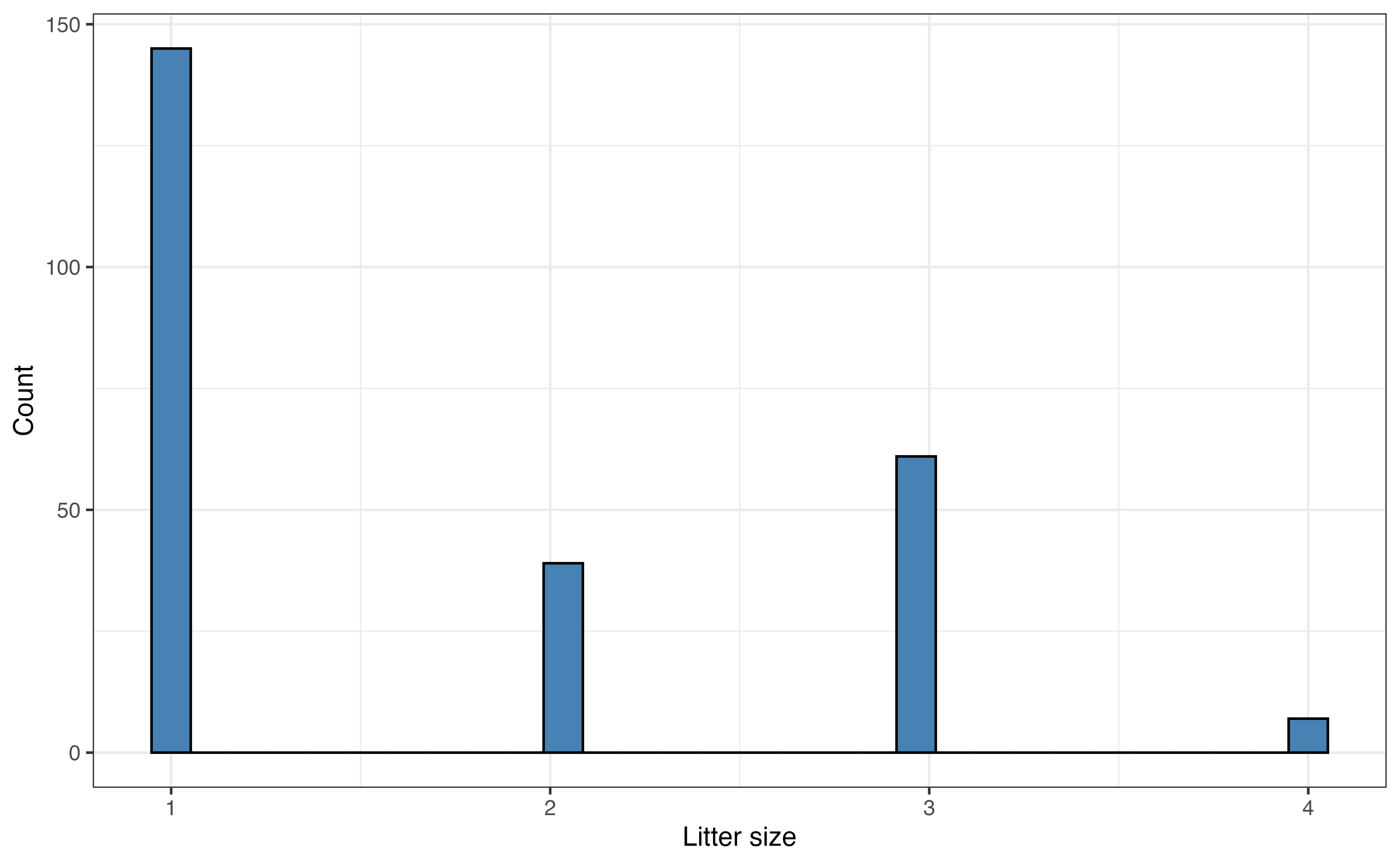 | litter_size | 1.7 | 0.9 | 1.0 | 1.0 | 1.0 | 3.0 | 4.0 | 0 |