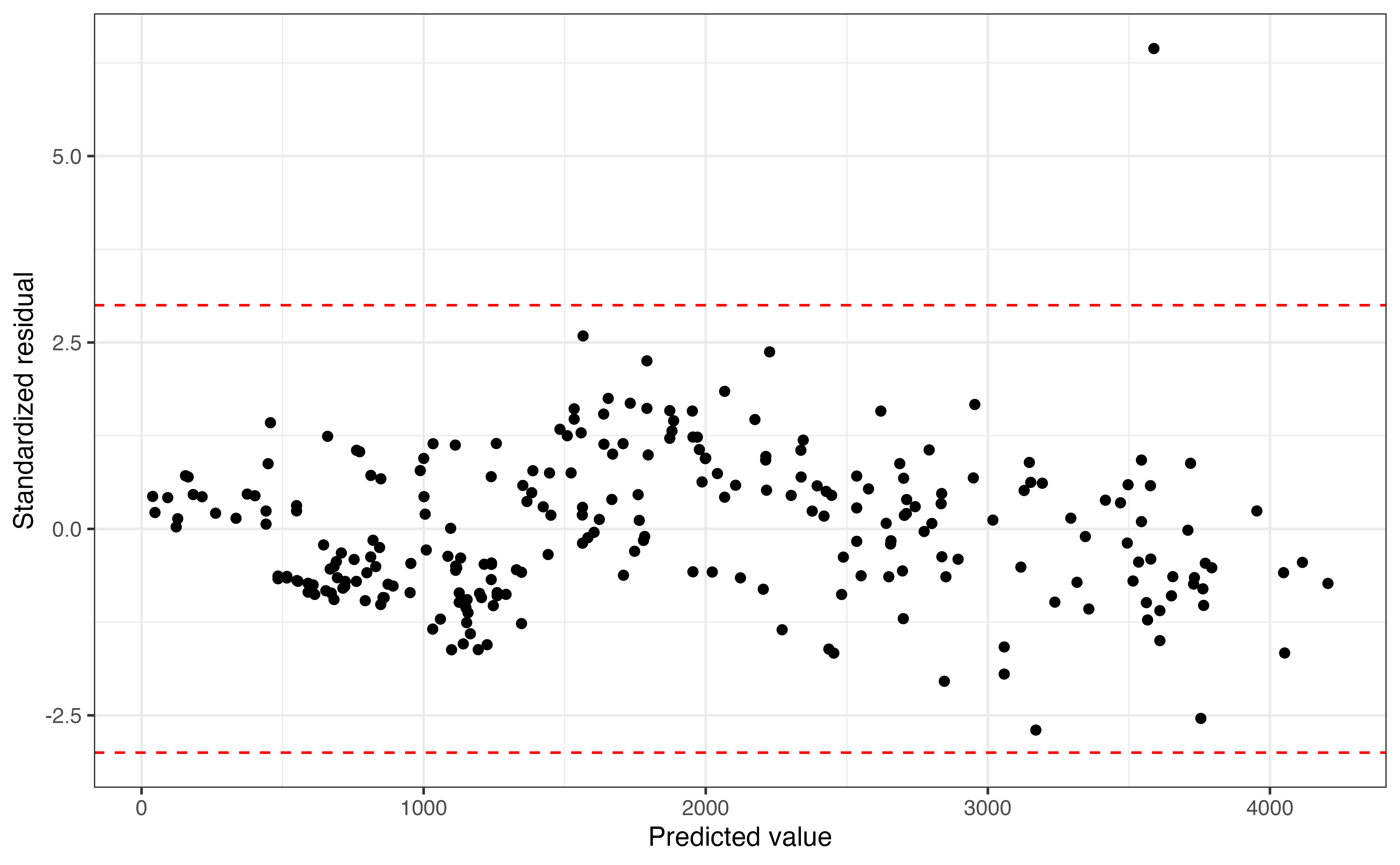 - Explain what the value of the standardized residual means in the context of the data.10