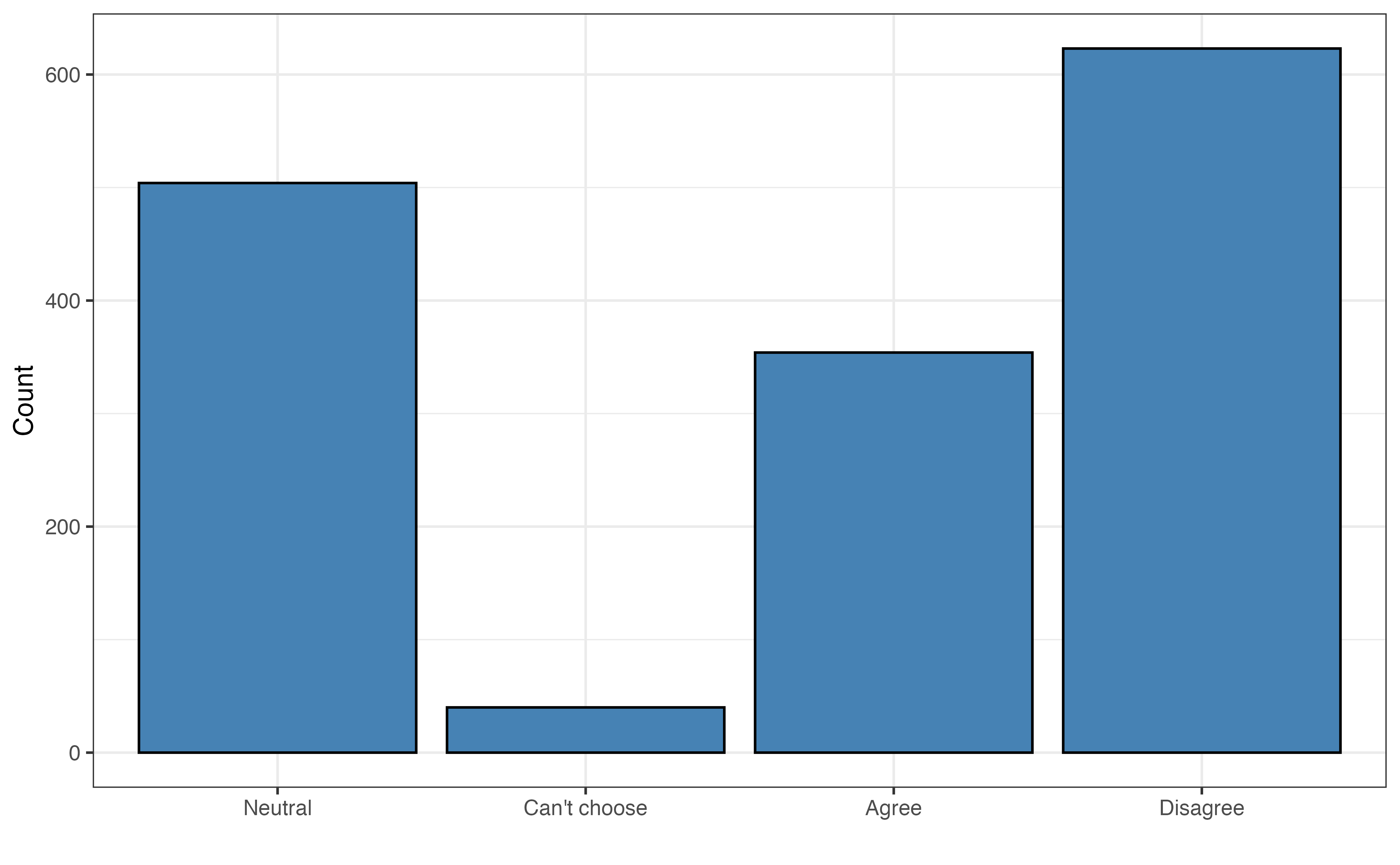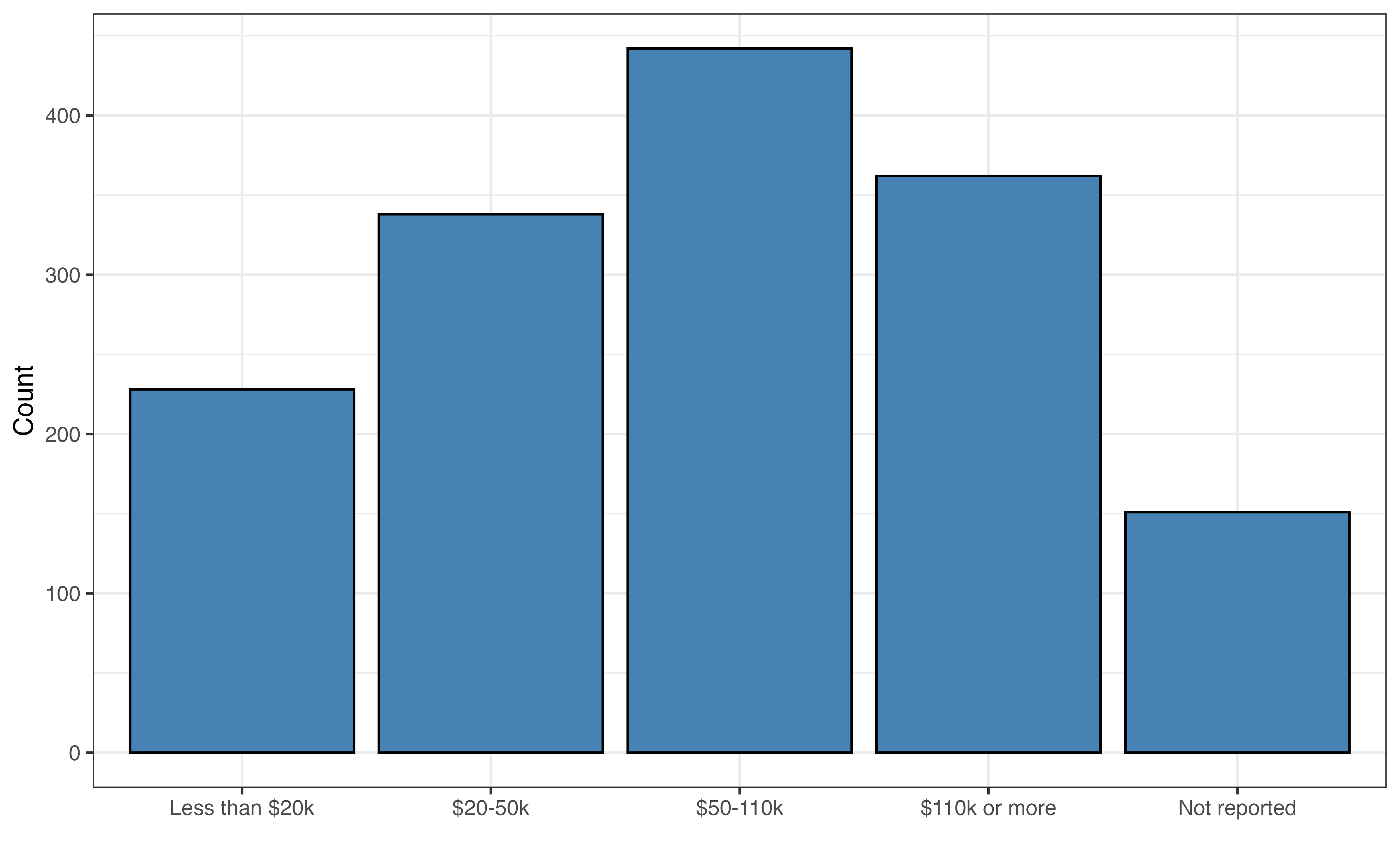 Table 12.3 shows the observed value of the response (aidrive_comfort), predicted probability, and predicted class for ten respondents. For many of these respondents, the observed and predicted classes are equal. There are some, such as Observation 6, in which the predicted classes differs from the observed. In this instance, the respondent had a combination of age, income, and tech_easy, that are associated with a higher probability of being comfortable with driverless cars; however, the individual responded they are not comfortable with driverless cars in the General Social Survey.