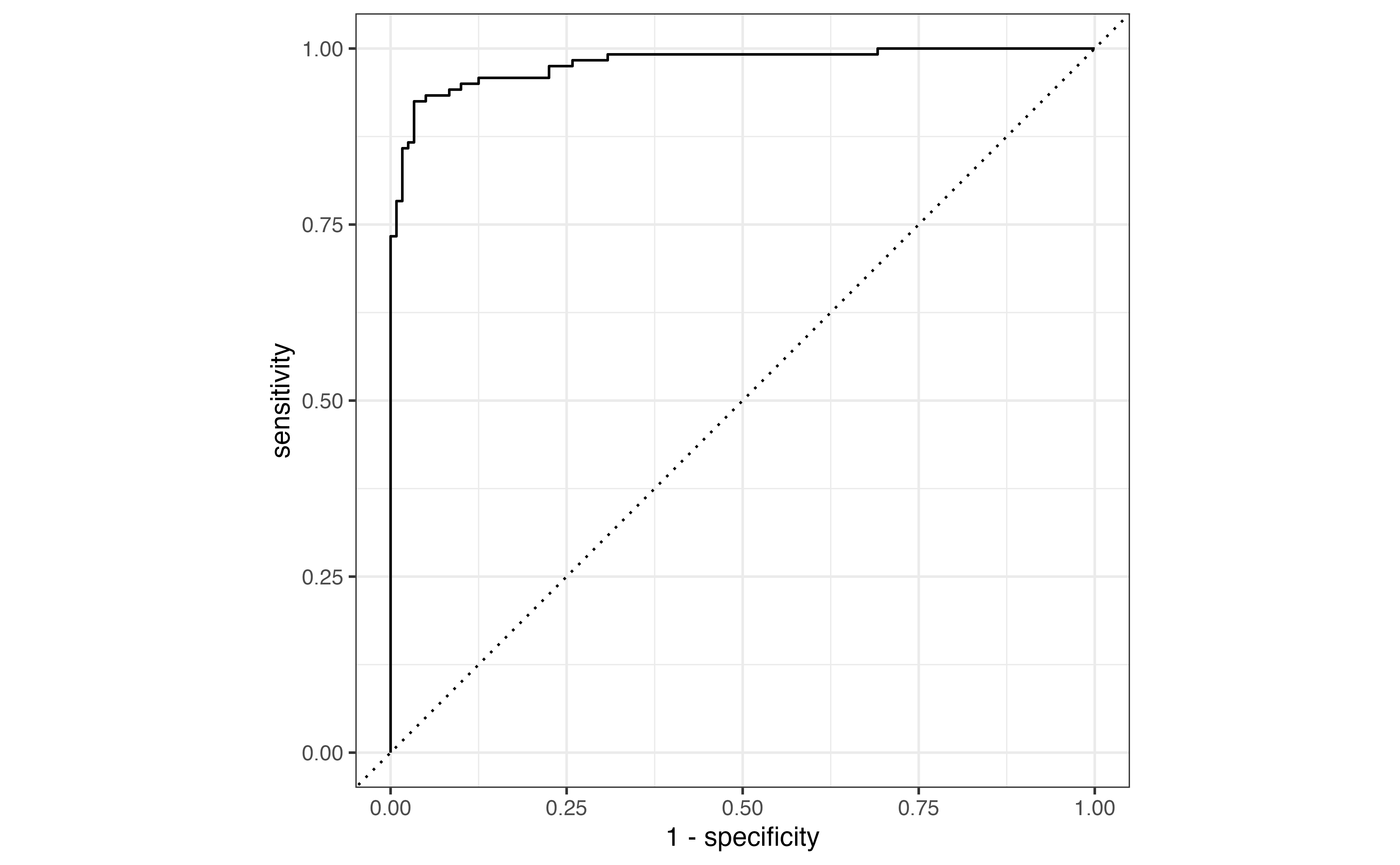 The sensitivity (true positive rate) is the proportion of those with observed \(y_i = 1\) that were correctly classified as \(\hat{y}_i = 1\). In machine learning contexts, this value is also called recall or probability of detection.